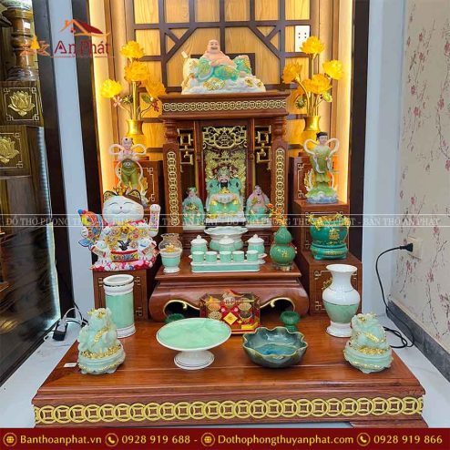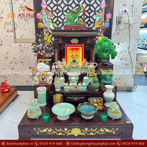 Ban Thờ Thần Tài Thổ Địa Đủ Đồ Thờ Giả Đá Xanh Ngọc Cao Cấp TT815