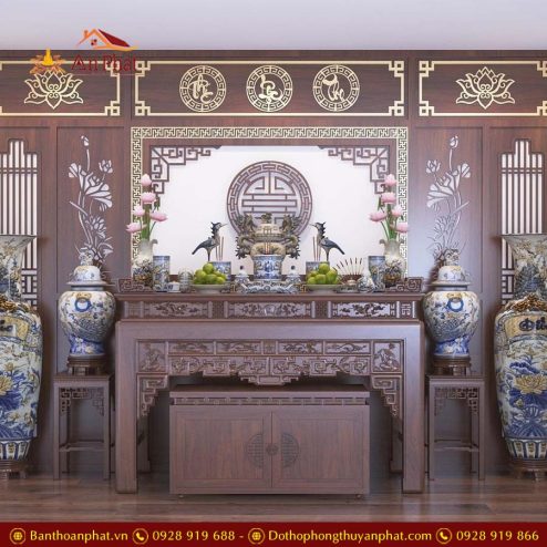Bàn Thờ Gia Tiên Mẫu Triện Sen Liền BTD2213