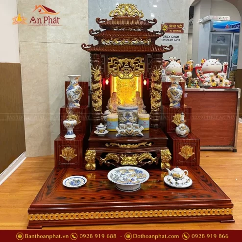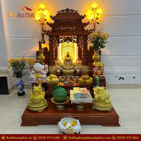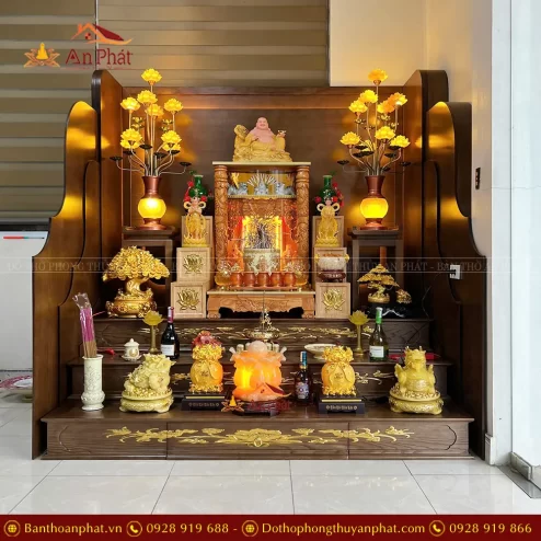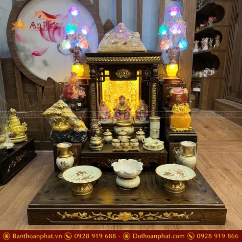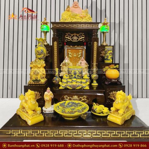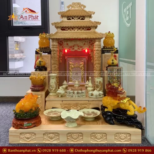 Bàn Thờ Thần Tài Gỗ Sồi Đồ Thờ Men Vàng TT869