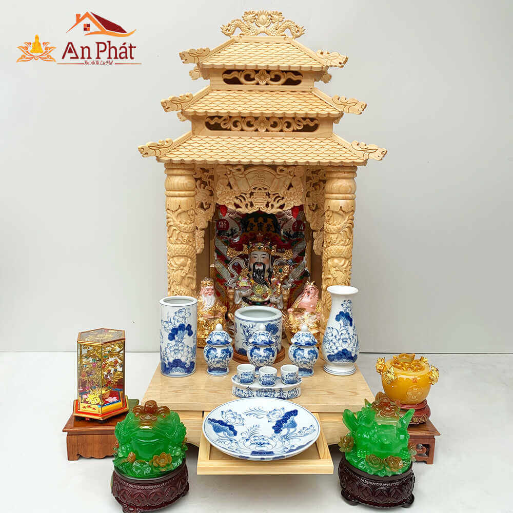 Bàn thờ thần tài ông địa 3 mái chùa chạm trổ cao cấp