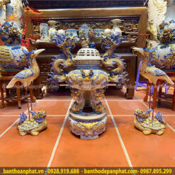 Ý nghĩa bộ đỉnh hạc men rạn đắp nổi cao cấp trong thờ cúng, đồ thờ tâm linh Bát Tràng