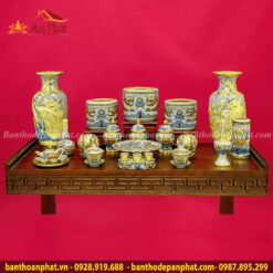 | Sản phẩm bao gồm | 1 Bát hương 18, 2 bát hương 16, 3 Chóe thờ, 1 Mâm bồng 25, 1 cầu chén 3, 1 ống hương, 1 Đèn dầu, 2 Lộc Bình 45F, 1 nậm rượu, 1 bộ ấm chén 5, 1 bộ 6 bát, 2 bát sâm |