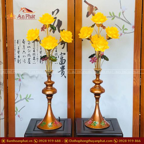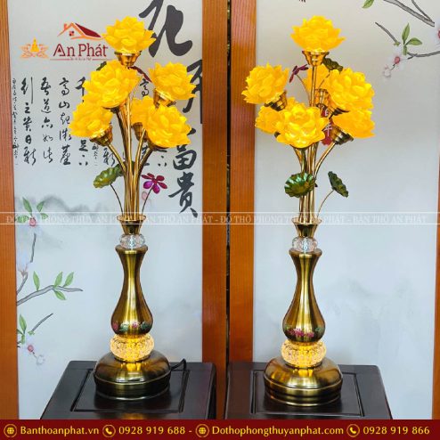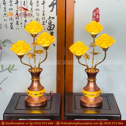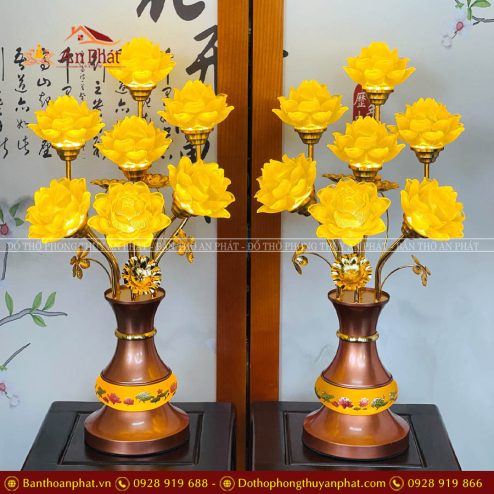 Đèn Thờ Cao Cấp Thân Đồng 7 Bông Hoa Sen Lưu Ly 2 Đế DT1085