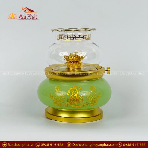 Đèn Thờ Dầu Ngọc Bọc Đồng Xanh Ngọc Cao Cấp GS1219
