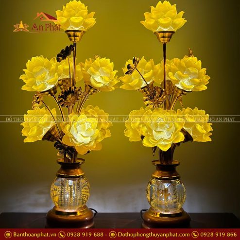Đèn Thờ Cao Cấp 7 Bông Hoa Sen Lưu Ly DT1083