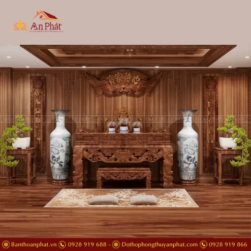 Bàn thờ đẹp An Phát xin gửi tới Quý vị những thông tin chi tiết về các yếu tố trong thiết kế phòng thờ gia đình, chung cư, biệt thự hay nhà phố,… Bao gồm những lưu ý về hướng ban thờ, vị trí đặt bàn thờ, kích thước bàn thờ chuẩn lỗ ban; cùng cách chọn màu sắc, chất liệu như thế nào sao cho phù hợp với gia đình. Đồng thời An Phát xin giới thiệu một số mẫu không gian phòng thờ đẹp để Quý vị đưa ra lựa chọn phù hợp với nhà mình để mang lại hưng thịnh, may mắn và tài lộc cho gia đình.