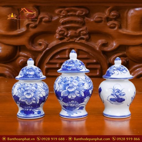 Bộ Đỉnh Hạc Men Lam Bát Tràng Cao Cấp GS802