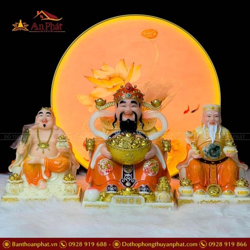 Tượng Thần Tài Thổ Địa Bộ 3 Ông Sứ Kim Đỏ T0238