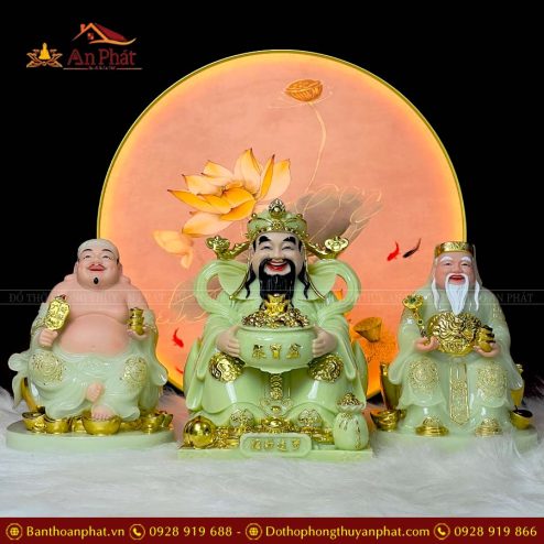 Tượng Thần Tài Thổ Địa Bộ 3 Ông Đá Cao Cấp Xanh Ngọc T0223