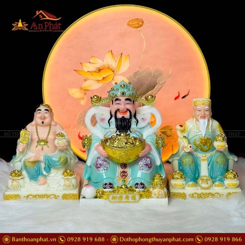 Tượng Thần Tài Thổ Địa Bộ 3 Ông Đá Cao Cấp Xanh T0220