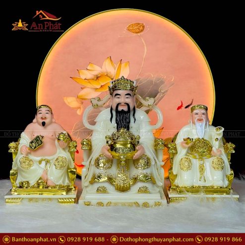Tượng Thần Tài Thổ Địa Bộ 3 Ông Đá Trắng Cao Cấp T0228