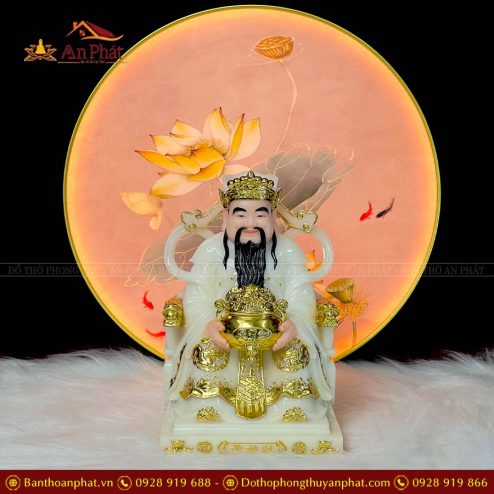 Tượng Thần Tiền Thần Tài Ngai Rồng Trắng 5404 Đá Cao Cấp T0229