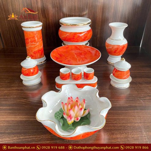 Bộ Đồ Thờ Thần Tài Ông Địa Giả Đá Đỏ GS1263