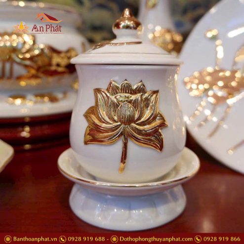 Chóe Thờ Sứ Sen Vàng Nổi Cao Cấp GS1201