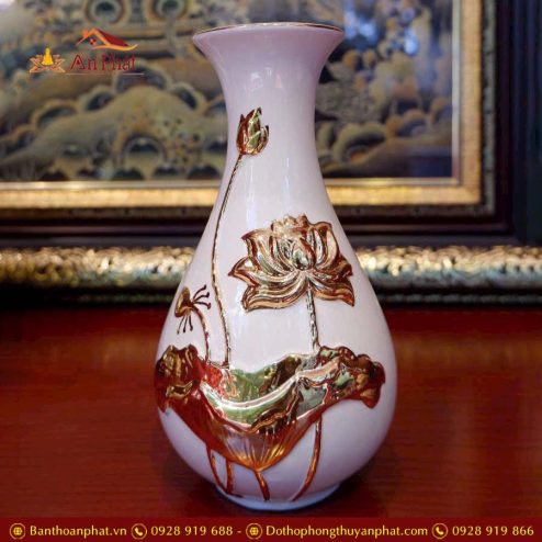 Lọ Hoa Sứ Sen Vàng Nổi GS1202
