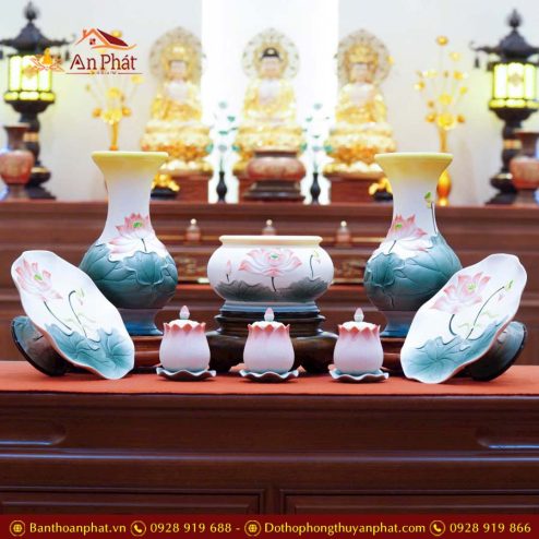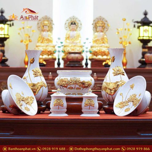 Bộ Đồ Thờ Gốm Sứ Sen Vàng Nổi Cao Cấp GS1191