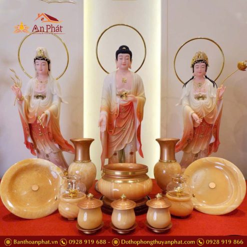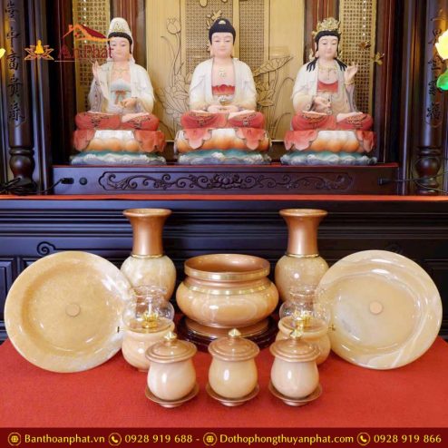 Bộ Đồ Thờ Ngọc Viền Đồng Cao Cấp Hoàng Long GS1188