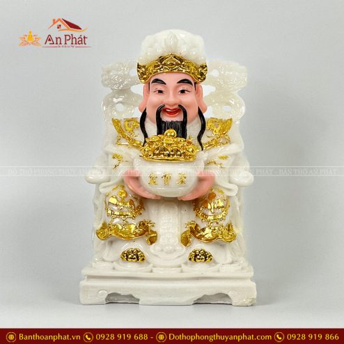 Tượng Thần Tài Ông Địa Cục Vàng Đá Việt Nam Trắng T0132