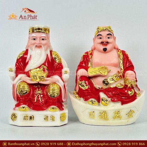 Tượng Thần Tài Thổ Địa Bộ 2 Ông Đá Đỏ Mẫu Thỏi Vàng T0138