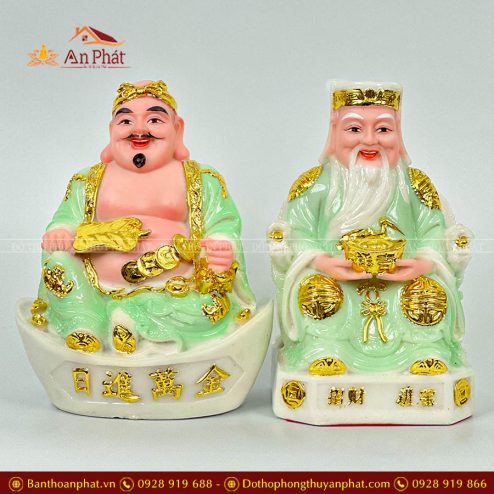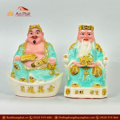 Tượng Thần Tài Thổ Địa Đá Việt Xanh Mẫu Thỏi Vàng Bộ 2 Ông T0135