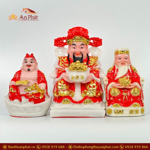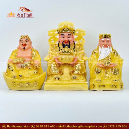 Tượng Thần Tài Thổ Địa Đá Việt Bộ 3 Ông Mẫu Thỏi Vàng T0142