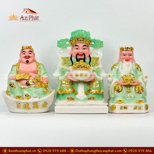 Tượng Thần Tài Thổ Địa Đá Việt Xanh Ngọc Bộ 3 Ông T0139