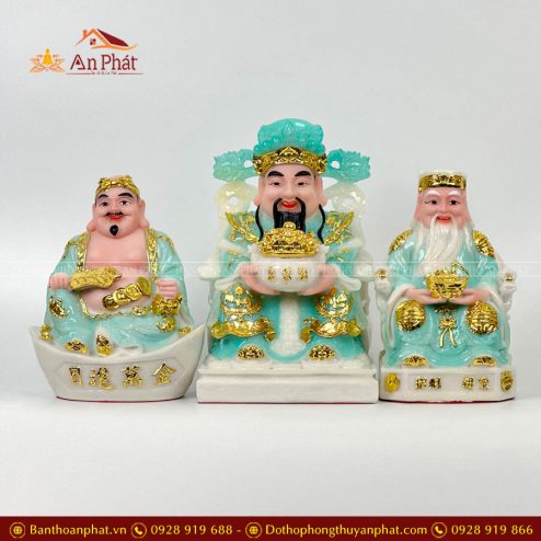 Tượng Thần Tài Thổ Địa Thỏi Vàng Đá Việt Xanh Bộ 3 Ông T0133