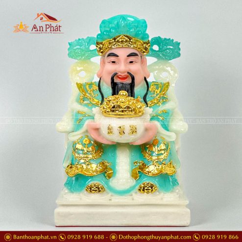 Tượng Thần Tiền Thần Tài Đá Việt Xanh T0134