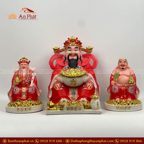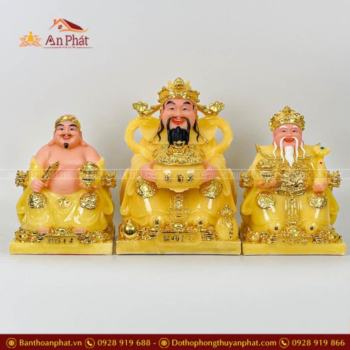 Tượng Thần Tài Thổ Địa Đá Thạch Anh Cao Cấp Bộ 3 Ông T0128
