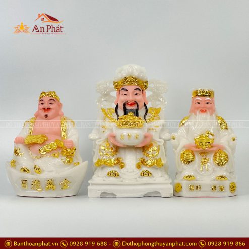 Tượng Thần Tài Thổ Địa Thỏi Vàng Đá Trắng Bộ 3 Ông T0130