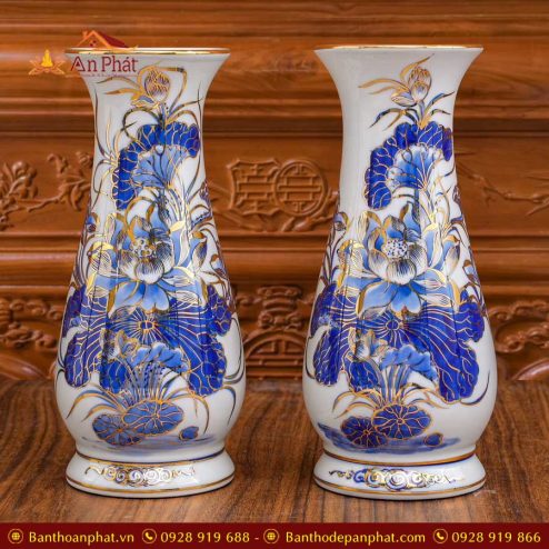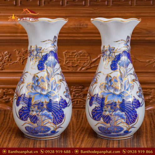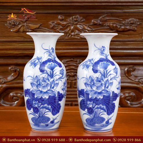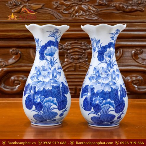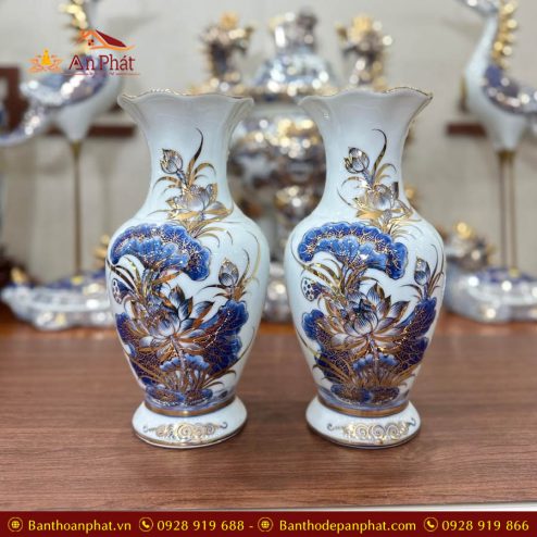 Đội Lọ Lộc Bình Cắm Hoa Men Lam Vẽ Tay GS1110
