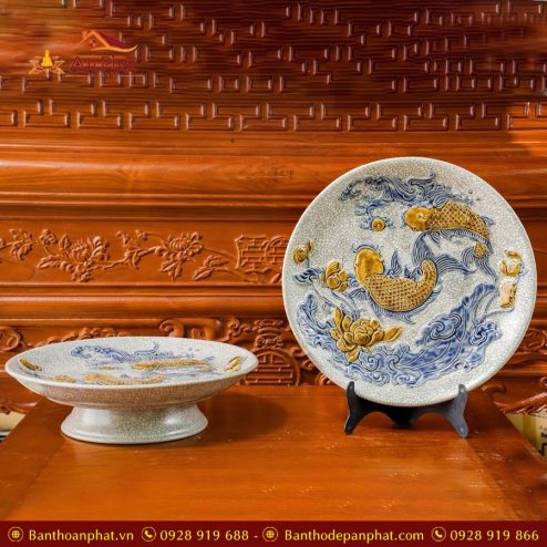 Mâm Bồng Men Rạn Đắp Nổi Cá Chép GS1118