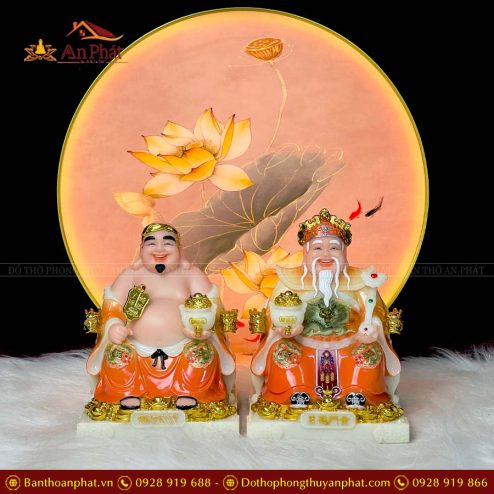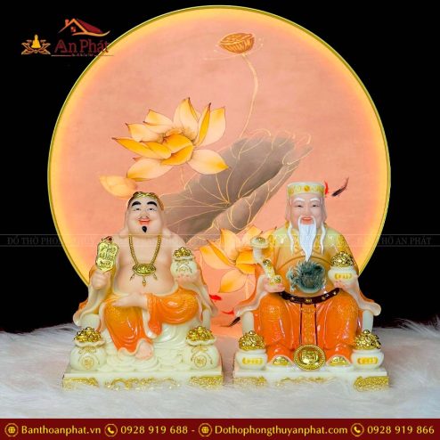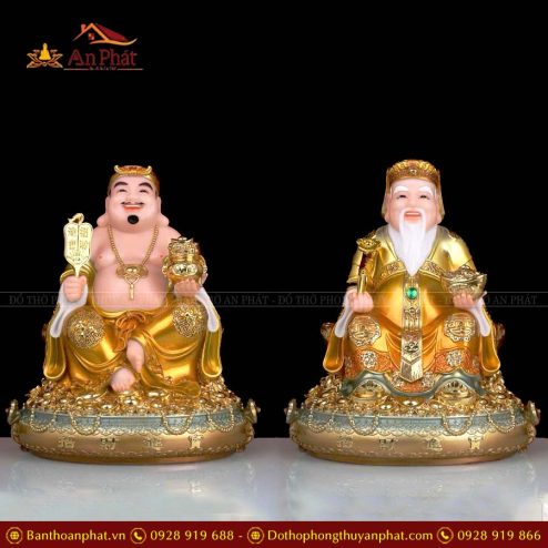 Tượng Thần Tài Ông Địa Bộ 2 Ông Sứ Đức Hóa Vàng T0246