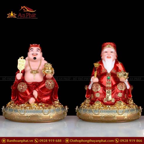 Tượng Thần Tài Thổ Địa Bộ 2 Ông Sứ Kim Đỏ T0237