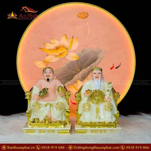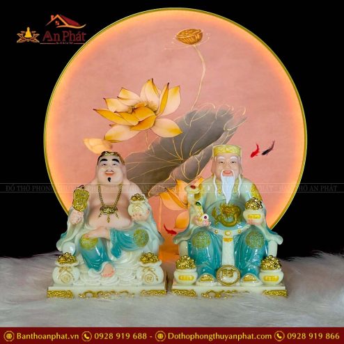 Tượng Thần Tài Thổ Địa Bộ 2 Ông Sứ Đức Hóa Trắng Cao Cấp T0240
