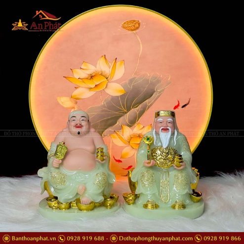 Tượng Thần Tài Thổ Địa Bộ 2 Ông Đá Xanh Ngọc Nhập Khẩu 1462 T0222