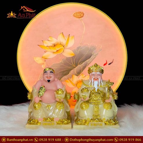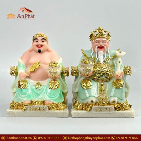 Bộ 2 Tượng Thần Tài Thổ Địa Đá Cao Cấp Xanh Ngọc T0193