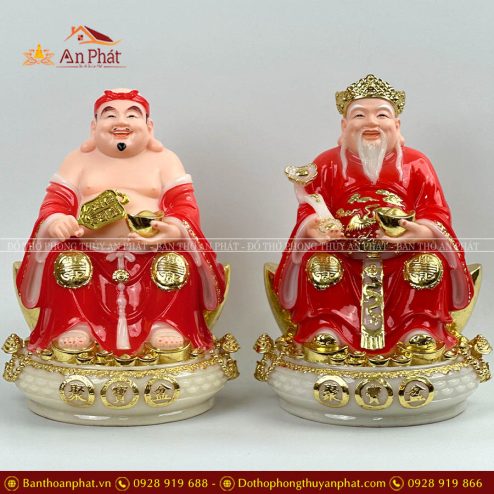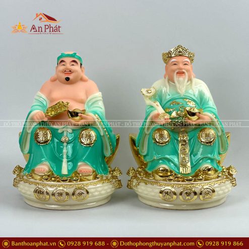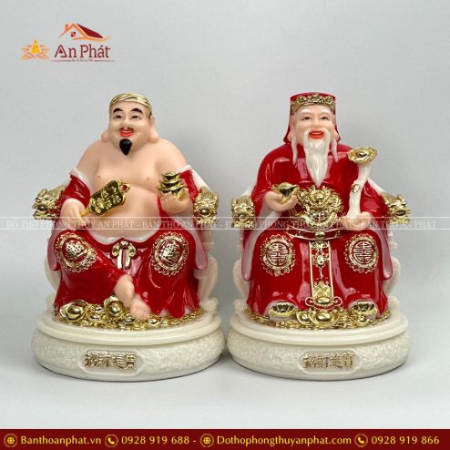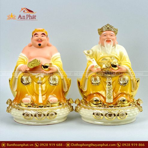 Tượng Thần Tài Thổ Địa Bộ 2 Ông Sứ Ngà Bát Tràng Cao Cấp T0205