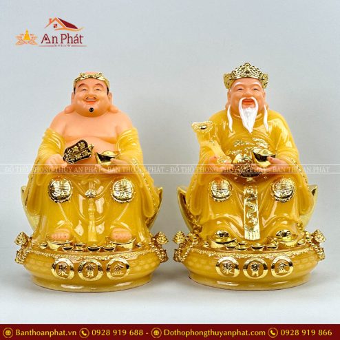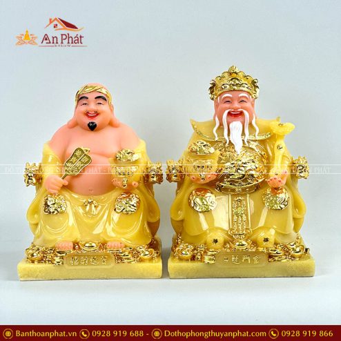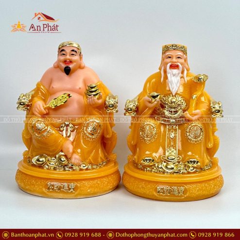 Tượng Thần Tài Thổ Địa Bộ 2 Ông Đá Thạch Anh Vàng Cao Cấp T0184