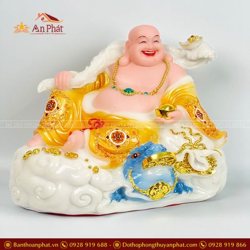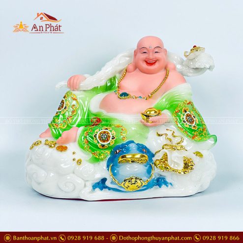 Tượng Phật Di Lặc Phú Quý Vác Đào Xanh TDL021