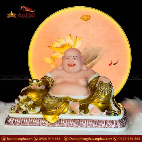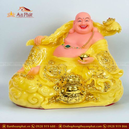 Tượng Phật Di Lặc Đá Ngồi Đế Vàng TDL025