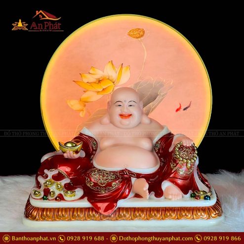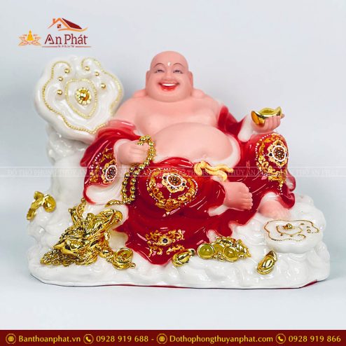 Tượng Phật Di Lặc Phú Quý Vác Đào Đỏ TDL023